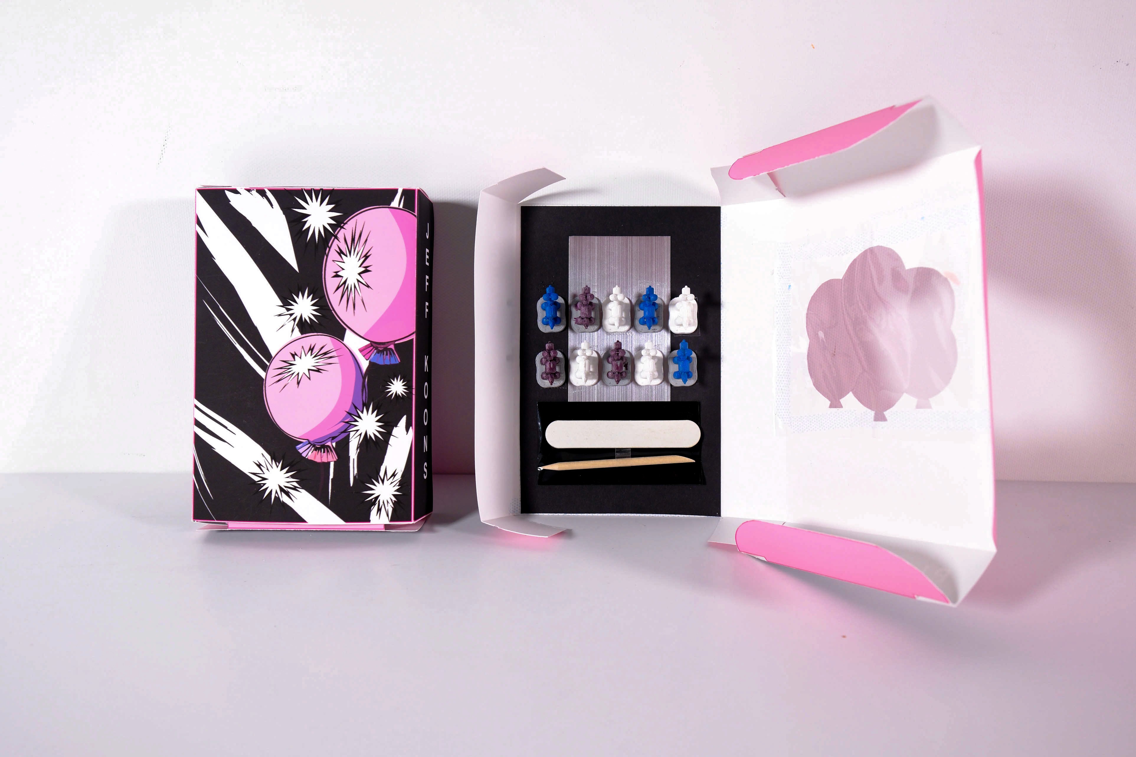 Inspired by the playful optimism and sculptural language of contemporary artist Jeff Koons, this project explores the intersection of art, product design, and wearable objects through a fully realized press-on nail kit.